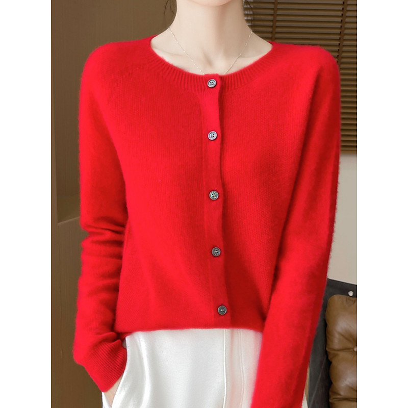 Women's Sweater Cardigan Casual Soft Pure Color Ribbed Crew Neck Buttons Knitted Long Sleeve Regular Tops Knit Outdoor Daily Weekend White Red Fall Winter