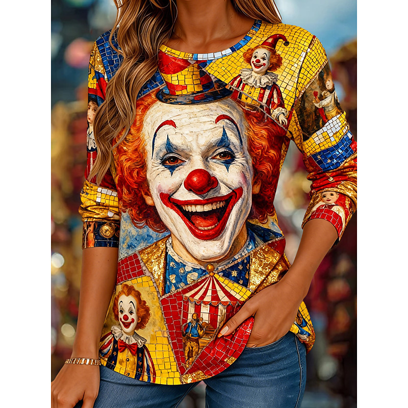 Carnival Women's T Shirt Graphic Fashion Stylish Casual Long Sleeve Crew Neck Regular Tops Daily Weekend Vacation Wear Print Red Summer Spring Fall