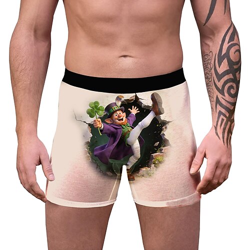 San Patrizio 2026 Leprechaun Trifoglio Irlandese fortunato Carnevale Boxer aderenti Biancheria intima Cosplay Adulti Per uomo Giorno di San Patrizio Casuale Feste Costume di Carnevale facile Vestirsi