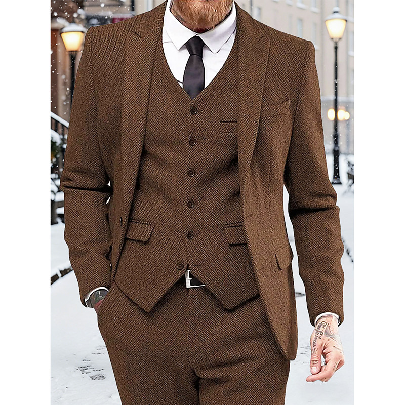 Herren Blazer Weste Anzughose Blazer Anzüge Geschäft Arbeit Hochzeit Mode Streetwear Herbst Winter Nylon Einfarbig 3 Teile Einreihig Blazer Schwarz Burgunderrot Marineblau Königliches Blau