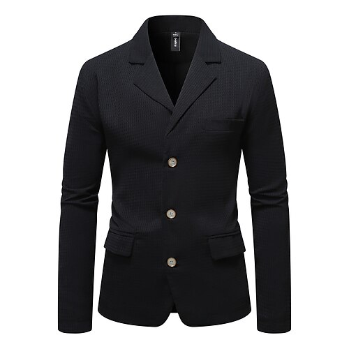giacca blazer da uomo, colletto a lancia, moda classica casual, scozzese, tinta unita, blazer waffle, nero, azzurro cielo, marrone, vestibilità su misura, monopetto, tre bottoni