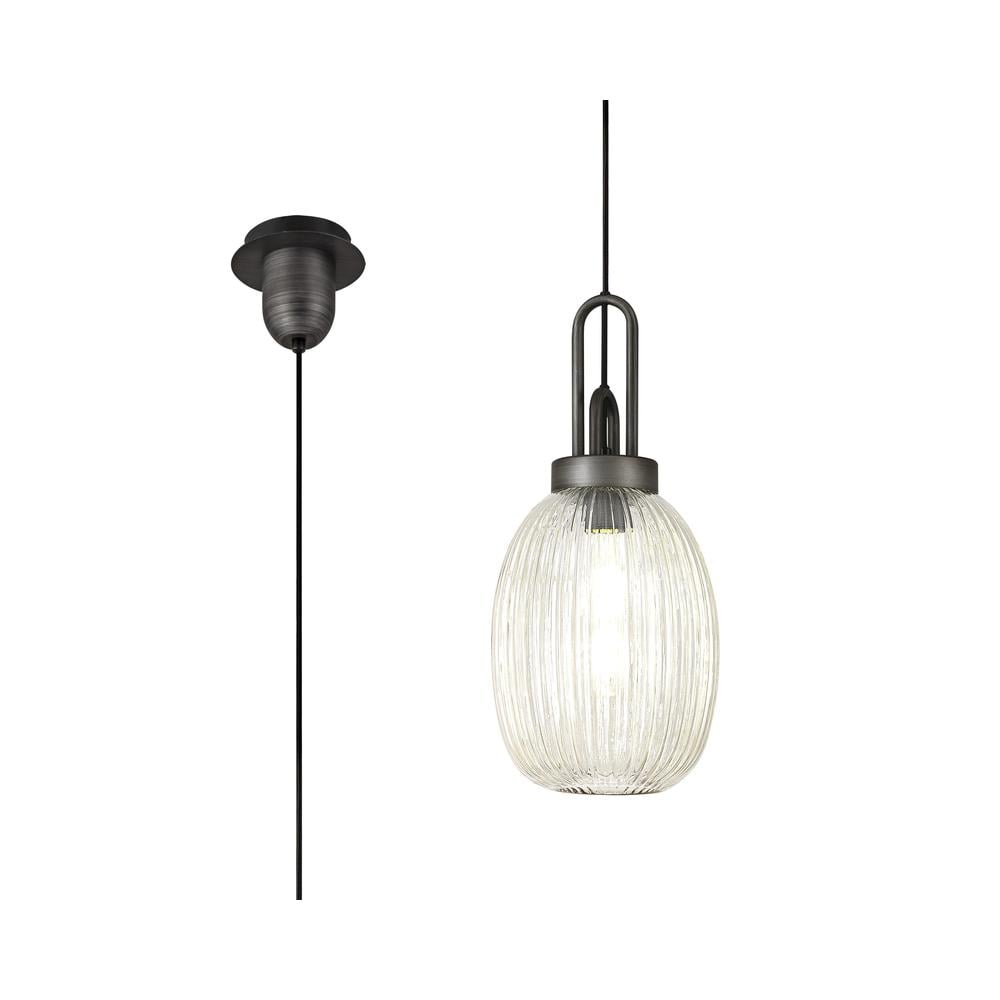 Kennith Pendant Light E27 20cm Almond Ribbed Glass Champagne Black/Aged Pewter Luxuria