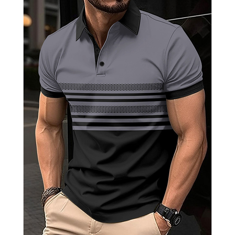 Men's Golf Shirt Golf Polos Shirts Work Casual Lapel Short Sleeve Basic Modern Stripes Patchwork Buttons Summer Spring Regular Fit Lake blue White Pink Wine Green Light Grey Golf Shirt