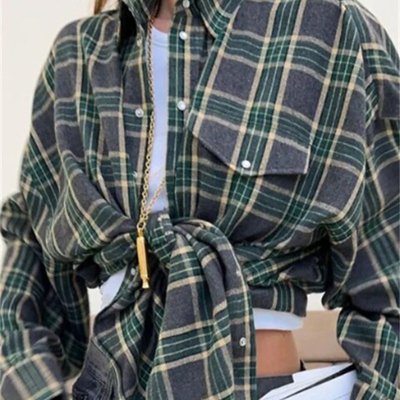 Women's Shirt Blouse Plaid Plain Elegant Vintage Stylish Long Sleeve Polo Collar Regular Tops Daily Work Holiday Ruched Patchwork Pocket Grass Green Black Pink Red Orange Spring Fall