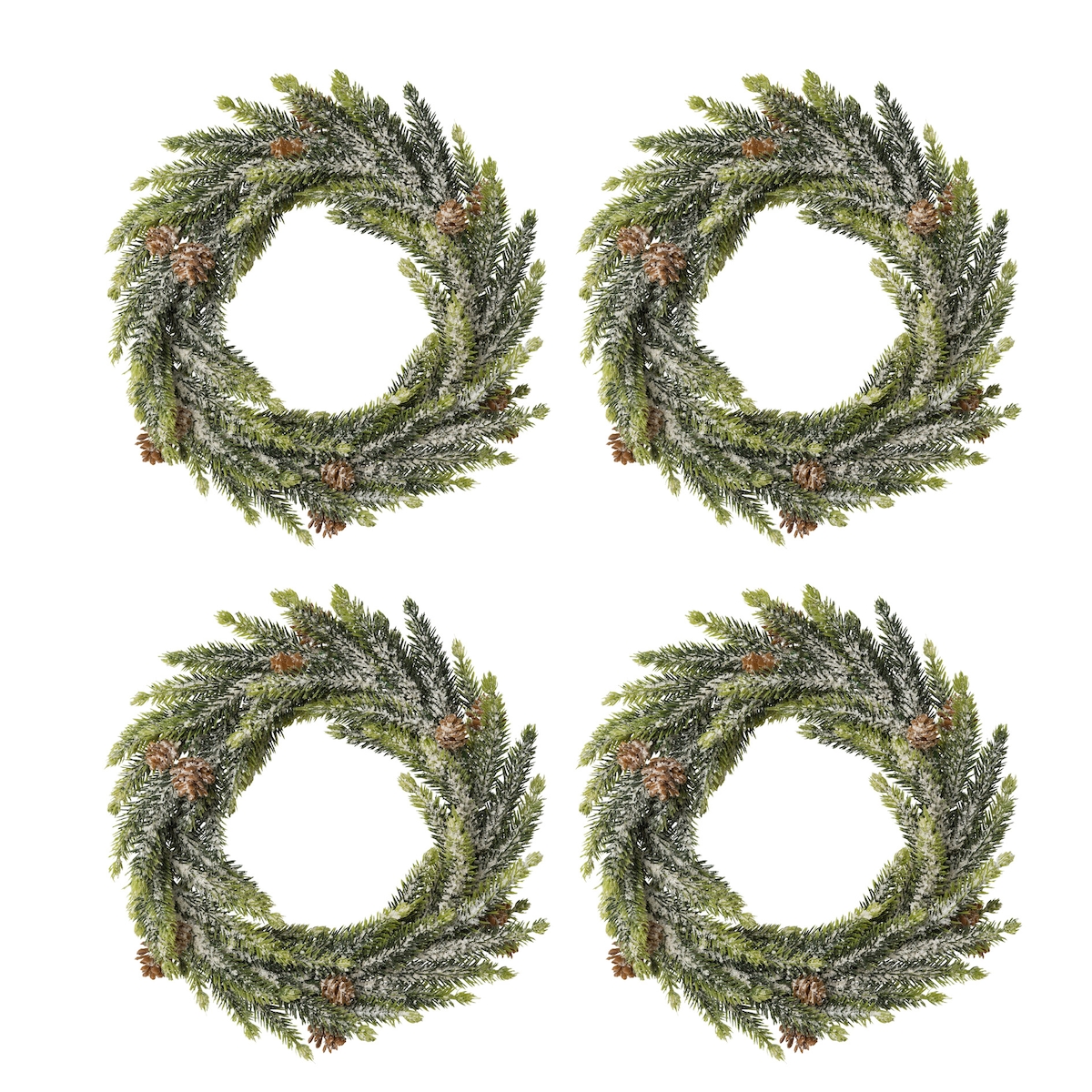 CREATIV green künstliche Pflanze Fichtenkranz mit Schnee, 25 cm, schnee, 4er Set