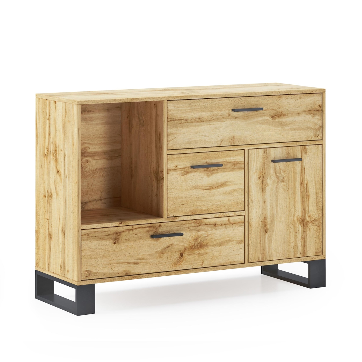 SKRAUT HOME Buffet/Esszimmeranrichte, Zusatzmöbel Buffet LOFT 1 Tür, 3 Schubladen, alles in der Farbe Eiche Rustikal. Maße: 120x40x86cm. - BUFFETLOFTROONE