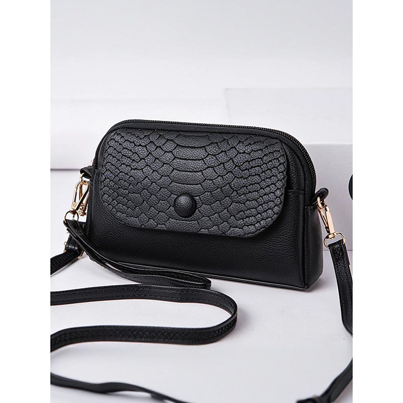 Women's Faux Leather Crossbody Wristlet Bag with Croc-Embossed Flap – Elegant Small Shoulder Purse for Daily Use, Travel Work