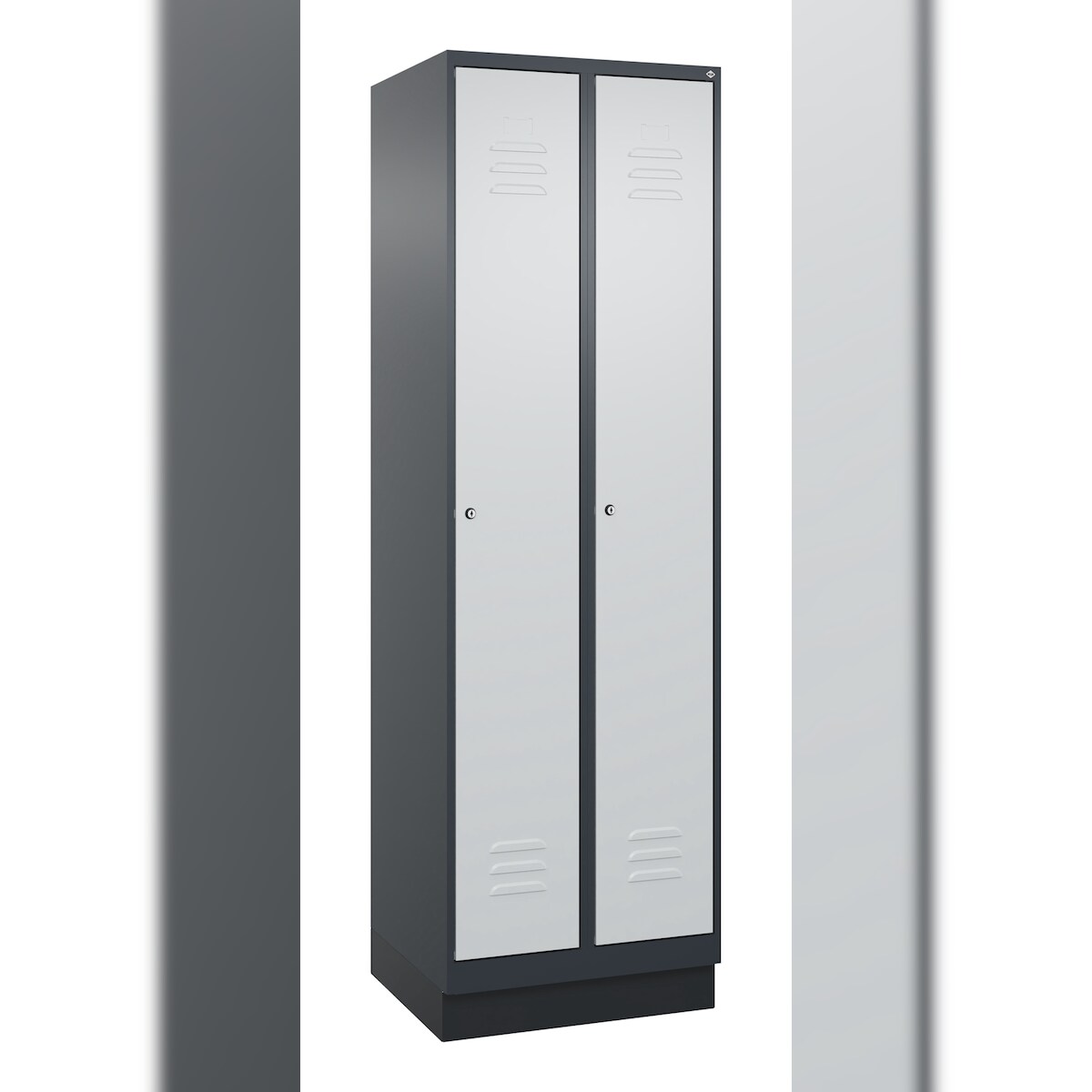 C+P Aufbewahrungsspind Classic PLUS, Sockel, 2 Abteile je 4 Fachböden, HxBxT 195x60x50cm, Zylinderschloss, Anthrazit/Hellgrau von PROREGAL