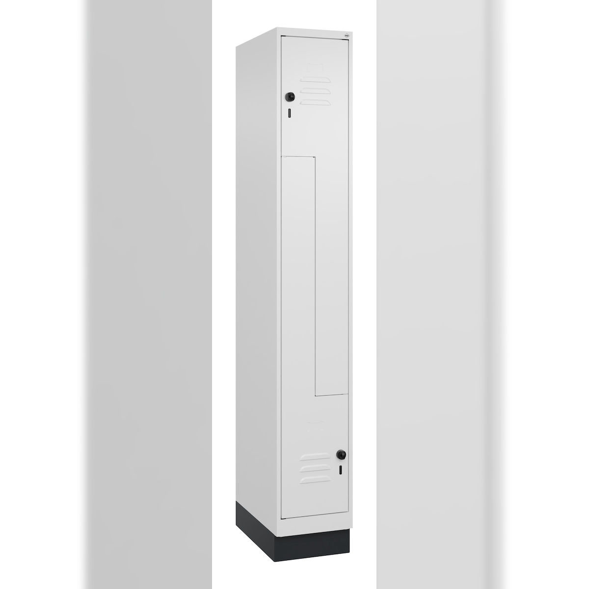 C+P Z-Spind Classic PLUS, Sockel, 2 Abteile, HxBxT 195x30x50cm, Zylinderschloss, Verkehrsweiß von PROREGAL
