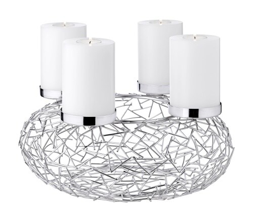 EDZARD Adventskranz Milano, Edelstahl glänzend vernickelt, Durchmesser 34 cm
