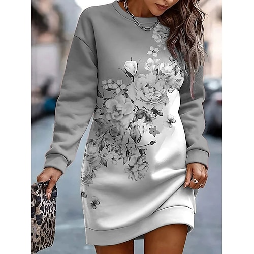 Per donna Mini Abito Abito a Tubino Casual Ferie Uscire Weekend Vestibilità regolare Floreale Grafico Manica Lunga Girocollo Rosa Viola Verde Grigio Primavera Autunno Inverno