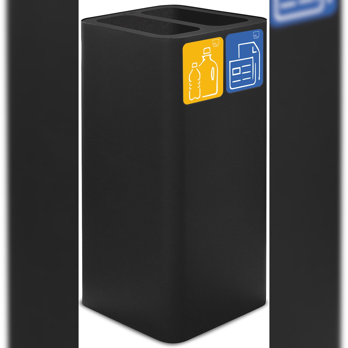 Stil Casa PURE Abfallbehälter, lackierter Stahl, 38x38xh. 80 cm, Deckel mit zwei Fächern, Kit mit magnetischen Piktogrammen, 100 Liter, schwarz.