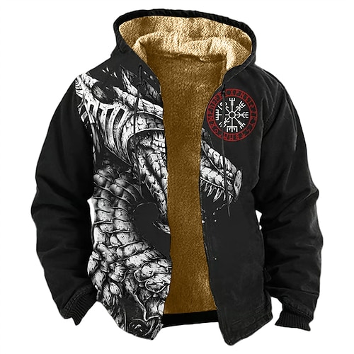 Per uomo Grafico Animale Felpa con Cappuccio Giacca di pelle Moda Streetwear Casual Manica Lunga Con Cappuccio All'aperto Sport all'Aperto Uscire Nero Grigio scuro Tasca Stampato Pile Inverno