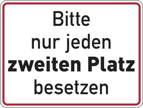 Hinweisschild, Bitte nur jeden zweiten Platz besetzen, 150 x 200 mm - 200x150x1.5 mm Kunststoff