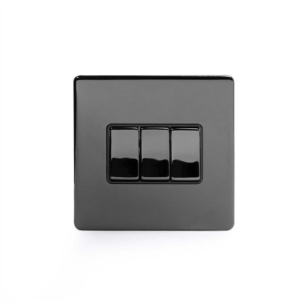 Lieber Black Nickel & White 10A 3 Gang 2 Way Switch - Screwless - Size: 86mm x 86mm x 2 mm