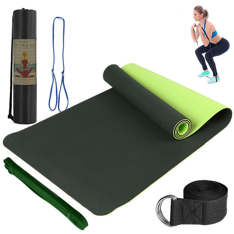 TPE6mm Two tone Yoga Mat Set of Five Pieces for Sports Fitness Stretching Latex 2080 Resistance Belt Comes with Backpack Strap Christmas Gift