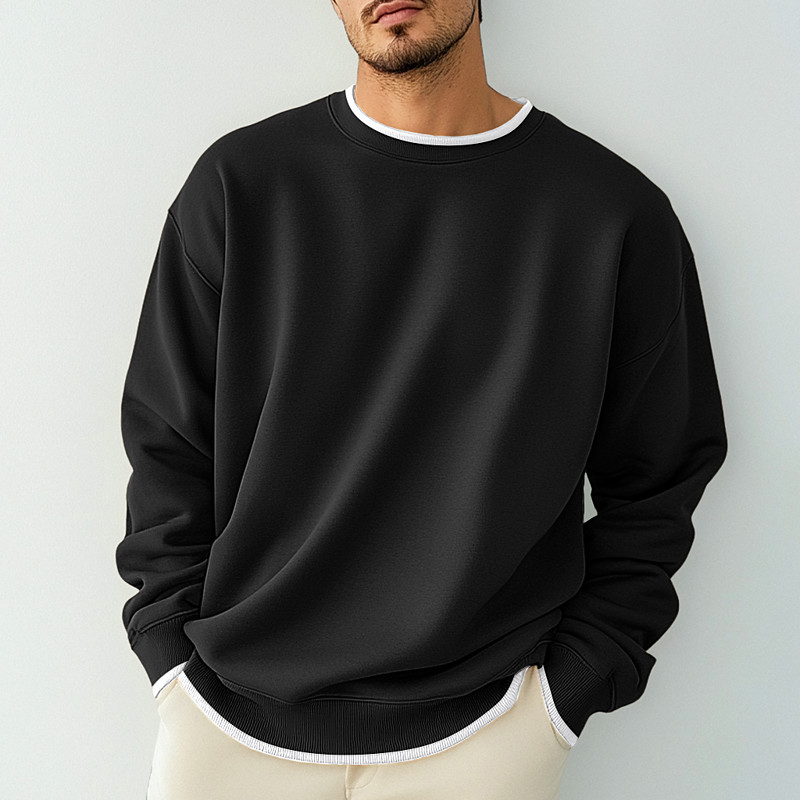 Men's T Shirt Oversized Shirt Tee Top Long Sleeve Shirt Long Sleeve Crew Neck Spring Fall Solid Color Daily Casual Street Style Fake two piece Rib Hem Outdoor Street Causal Black Gray Wine Top Tee