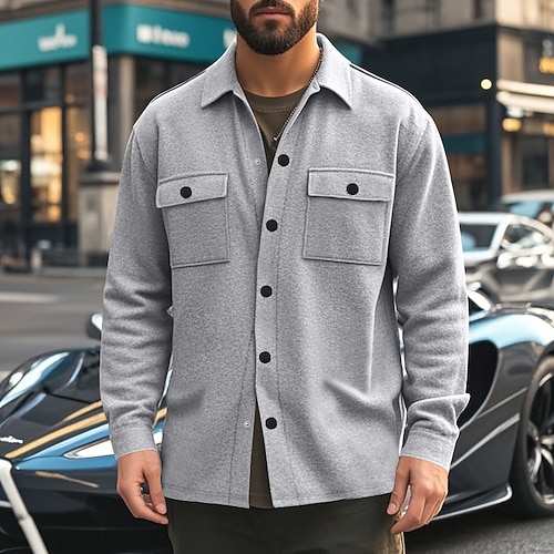 Per uomo Giacca Camicia Sovracamicie Giacca di transizione Quotidiano Resistente all'usura Tasca Estate Primavera Semplice Classico Bavero Nero Bianco Rosso Blu reale Viola chiaro Giacca