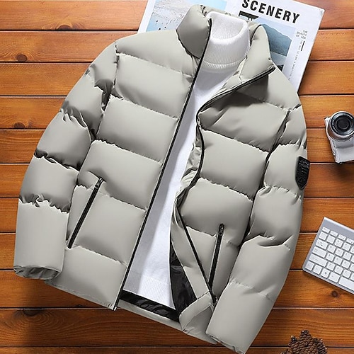 Per uomo Cappotto Invernale Giacca imbottita Imbottito Tasca Poliestere All'aperto Casuale Quotidiano Regolare Moda Streetwear Calore Termico Inverno Tinta unica Nero Bianco Rosa Blu reale Piumino