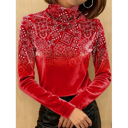 Per donna Maglietta Ombre Grafico Paisley Elegante Vintage Moda Manica Lunga Dolcevita Top Regolari Quotidiano Uscire Weekend Stampato Giallo Rosso Blu Reale Viola Autunno