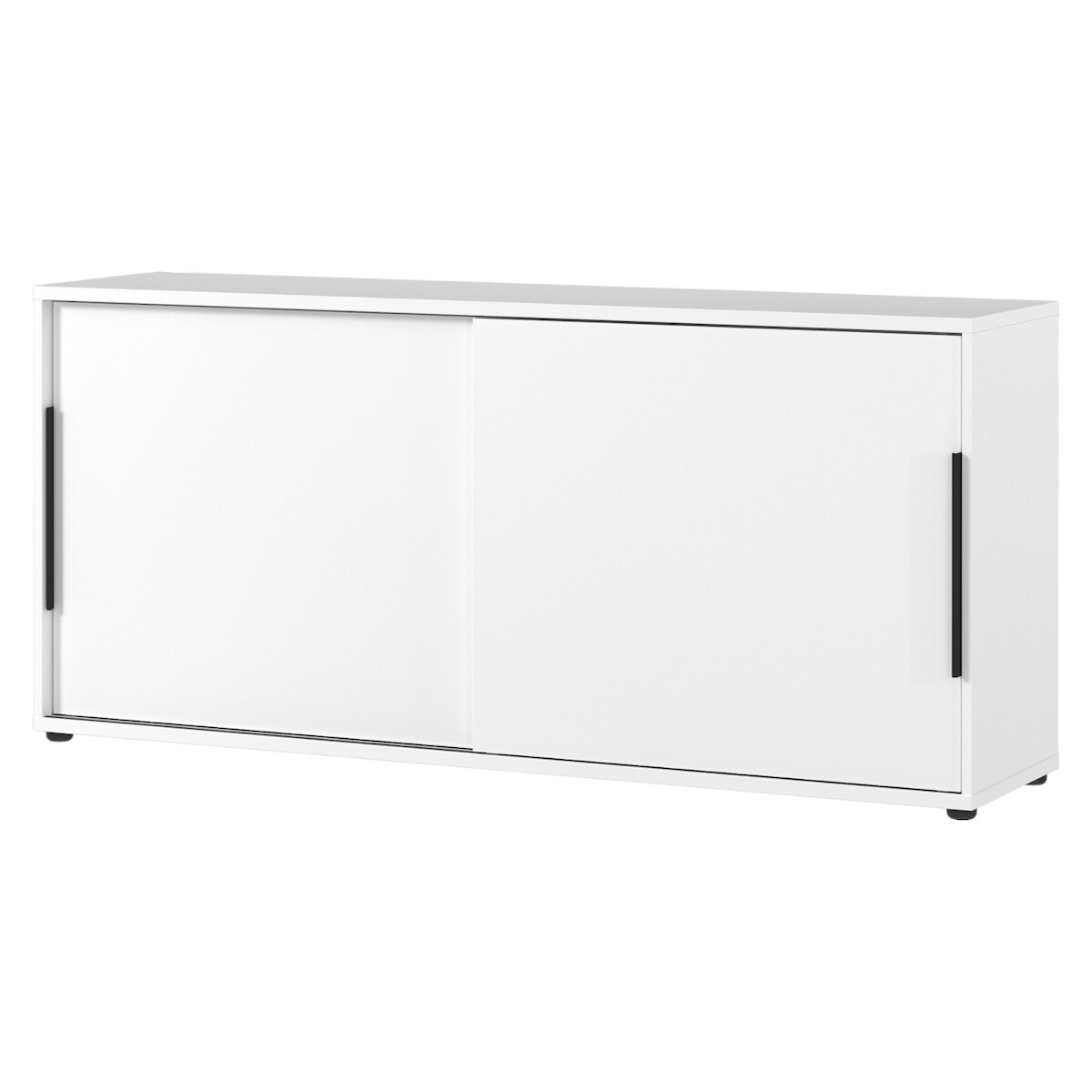 bümö Space Sideboard weiss mit Schiebetüren, Aktenschrank Holz 160 cm breit - Büro Schrank mit Schiebetür, Büroschrank schmal für die Dachschräge -