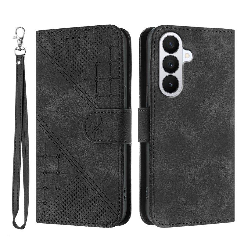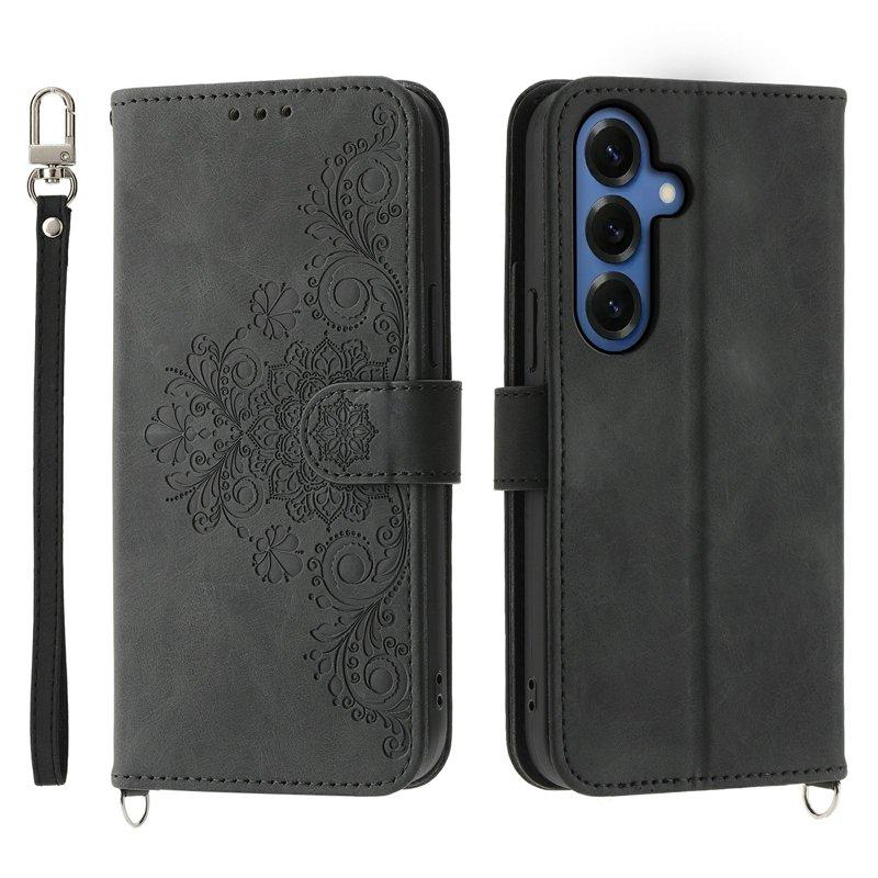 Samsung Galaxy S26 Plånboksfodral Blommönster Konstläder - Svart