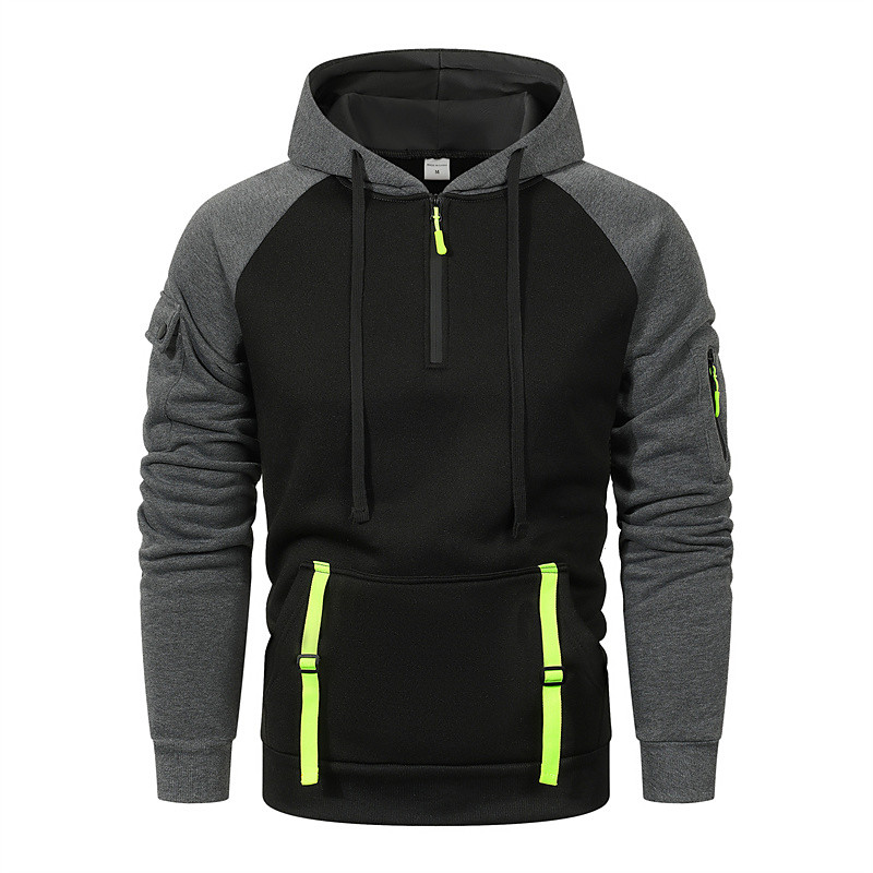 Men's Hoodie Quarter Zip Hoodie Black Camel Dark Gray Hooded Color Block Patchwork Pocket Quarter Zip Sports Outdoor Daily Holiday Polyester Streetwear Basic Casual Spring Autumn / Fall Clothing
