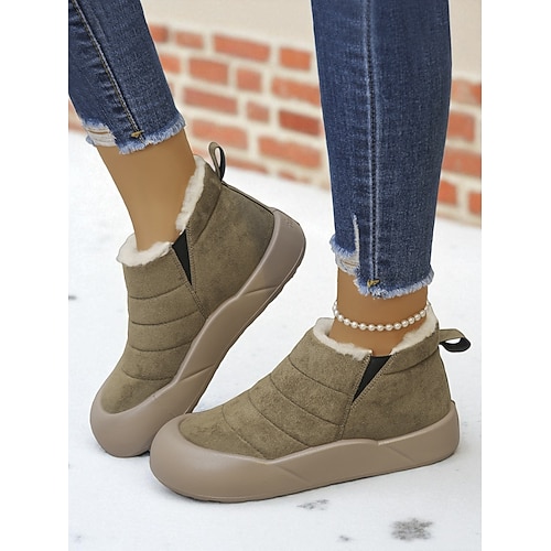stivali invernali corti trapuntati color caffè da donna – stivaletti imbottiti slip-on caldi foderati in pelliccia sintetica con cinturino per la neve all'aperto e l'uso quotidiano
