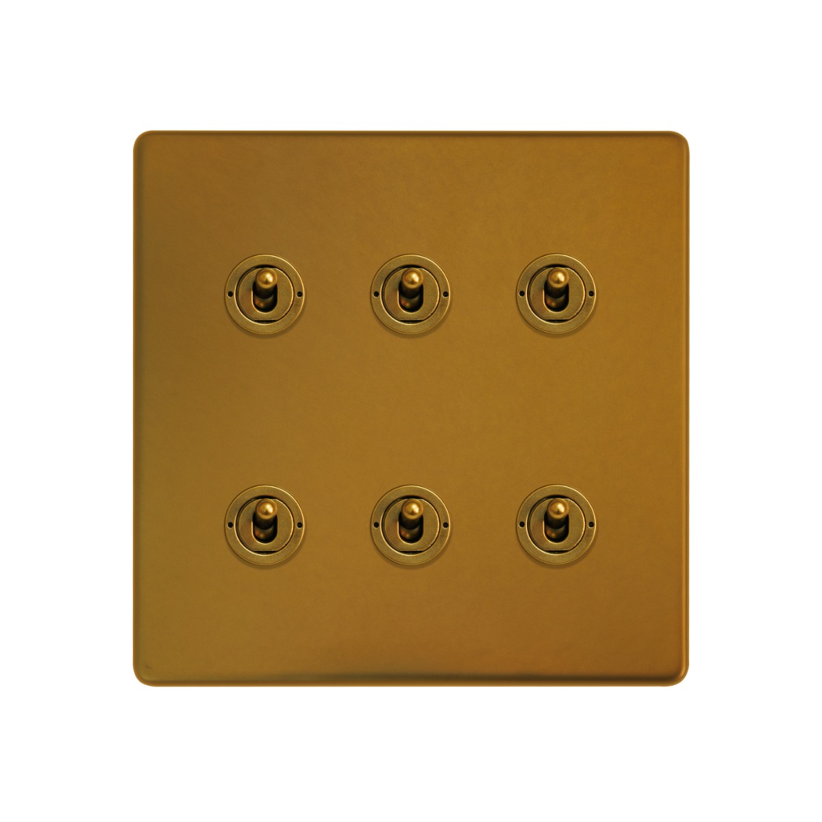 Soho Lighting Antique Gold 6 Gang Toggle Light Switch 20A 2 Way - Size: H 146mm x W 146mm