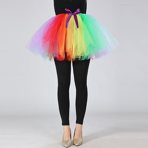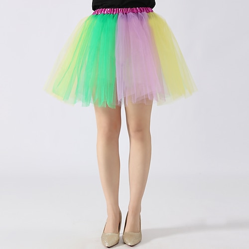 Carnival Costume 2026 Carnival Fancy Costume Tulle Skirt Tutu Skirt Retro Vintage 1950s 1980s Layered Puffy Neon Adults' Women's Halloween Carnival Party Performance Dance Ballet Easy Carnival Costume