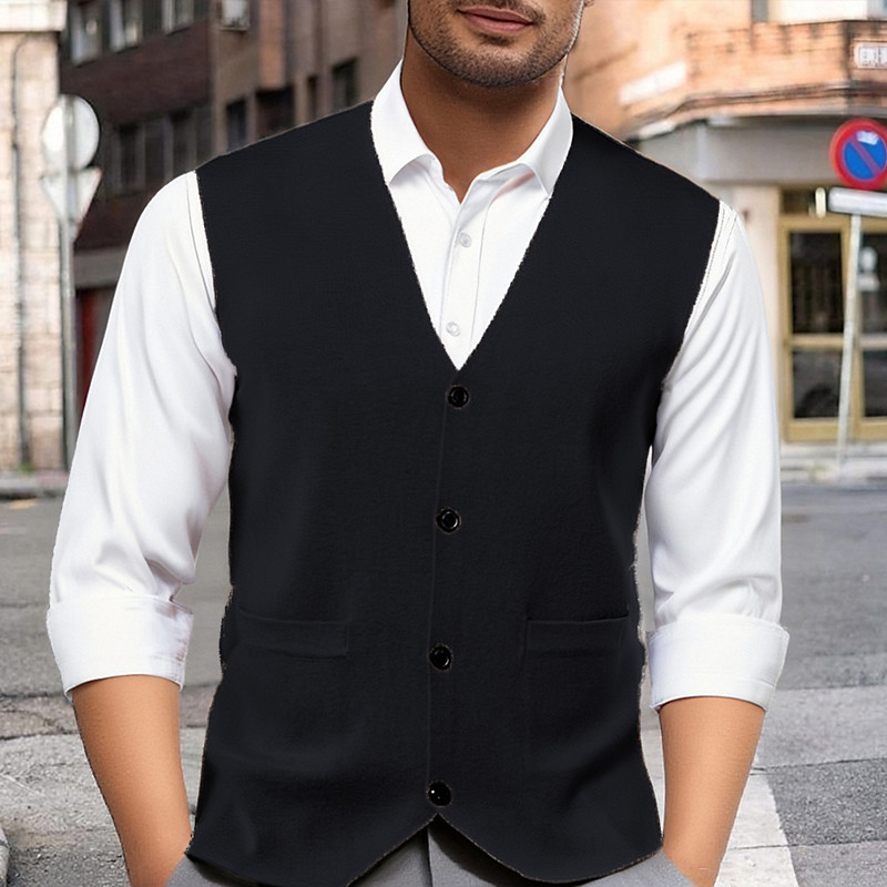 Men's Sweater Vest Dress Sweater Vest Knitwear Cardigan Vest Ribbed Knit Regular Tops Pocket Buttons Plain V Neck Fashion Classic Vacation Daily Wear Clothing Apparel Fall Winter Black Red S M L