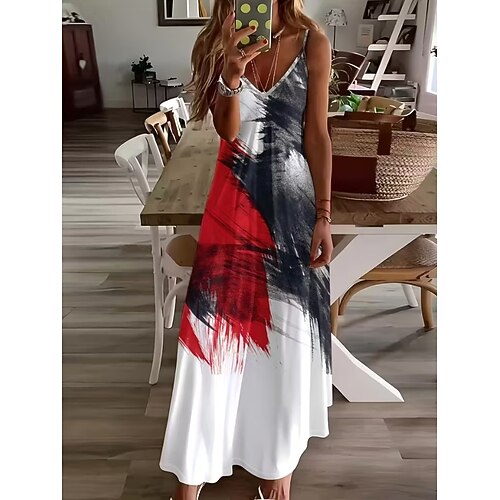 Per donna Abito maxi Vestito Estivo Abito a trapezio Abito Sottoveste Vacanza Casual Boho Spiaggia Vestibilità comoda Grafico Geometrico Graffiti Senza Maniche Scollo a V Blu bianco blu Giallo Rosso