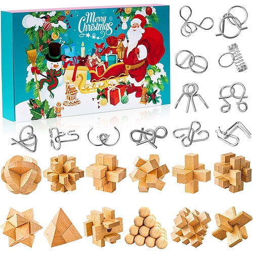 Calendario dell'avvento rompicapo 2025 per bambini - Calendario del conto alla rovescia di 24 giorni di Natale con giocattoli puzzle 3D in metallo e legno - Test di logica, QI e giochi di