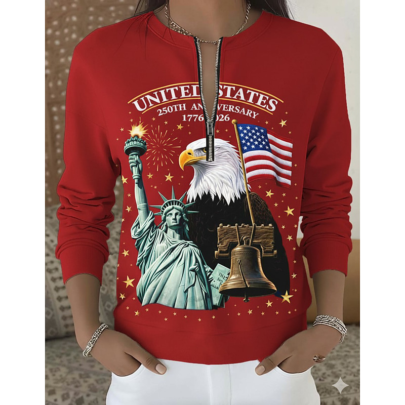 American 250th Women's Pullover Sweatshirt Zip Up Sweatshirts Graphic Geometric Color Block Fashion Casual Long Sleeve Crew Neck Half Zip Regular Tops Street Dailywear Patchwork Zipper Print