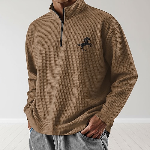 Per uomo Mucca Felpa Quotidiano Classico Casual Cowboy Western Collo alla coreana Zip a un quarto All'aperto Casa Ufficio Lavoro Nero Blu Marrone Verde militare Grigio Con zip Autunno Inverno