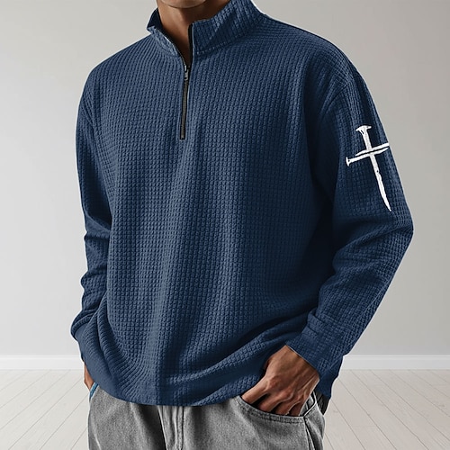Per uomo Croce Felpa Moda Quotidiano Classico Casual Collo alla coreana Zip a un quarto All'aperto Casa Ufficio Lavoro Nero Blu Marrone Verde Grigio Con zip Autunno Inverno progettista S M L XL XXL