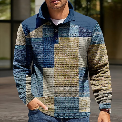 Per uomo Geometrico Plaid Nido d'ape Felpa Quotidiano Classico Casual Collo alla coreana All'aperto Casa Lavoro Regalo Blu Giallo Viola Grigio Bottoni Autunno Inverno progettista S M L XL XXL XXXL