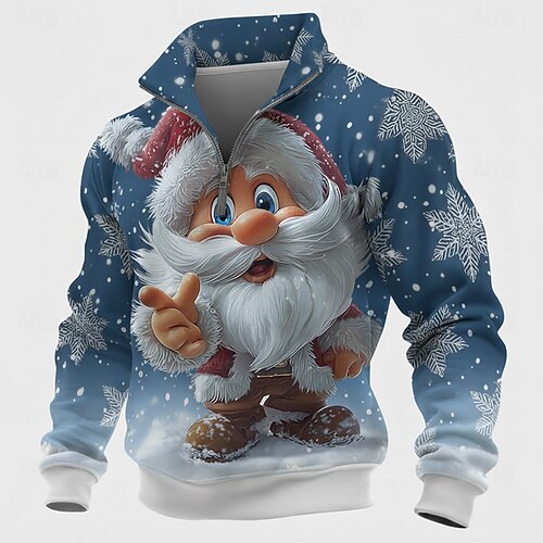 Natale Per uomo Babbo Natale Felpa Cool Quotidiano Elegante Manica Lunga Collo alla coreana All'aperto Casa Regalo Blu Rosso Viola Grigio Cerniera Autunno Inverno progettista S M L XL XXL XXXL
