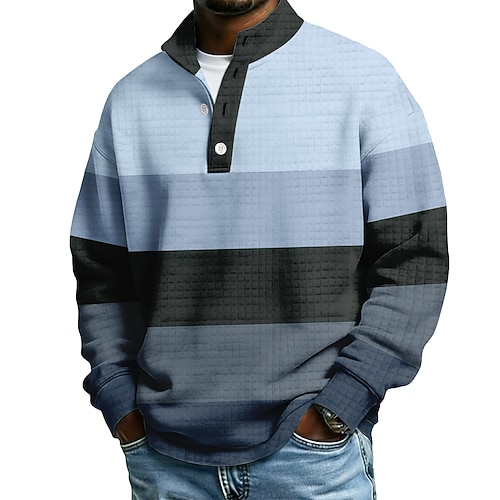 Per uomo Blocco di colori Gradiente di Colore Nido d'ape Felpa Moda Quotidiano Casual Collo Alto Casa All'aperto Abbigliamento casual alla moda Ufficio Blu Viola Verde Blu scuro Bottoni Autunno