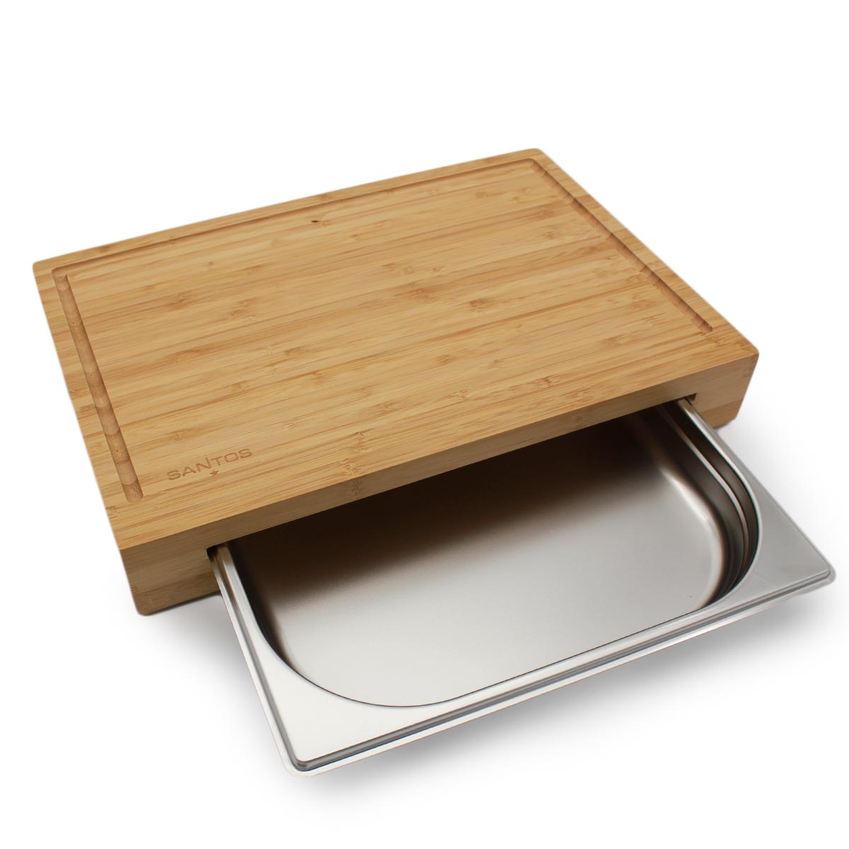 SANTOS BBQ Schneidebrett Bambus mit Edelstahl-Auffangschale