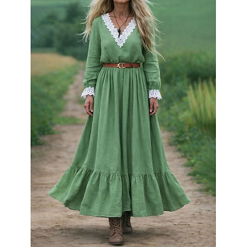 Per donna Abito maxi Abito a trapezio Casual All'aperto Uscire Vestibilità comoda Tinta unica Manica Lunga Scollo a V Verde Estate Primavera Autunno