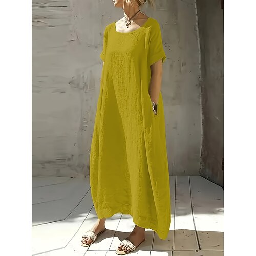 Per donna Abito maxi Abito a trapezio Abito Estivo Casual Vestibilità comoda Semplice Manica Corta Scollo a V Blu Giallo Cachi Estate Primavera