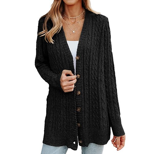 Per donna Felpa Cardigan Streetwear Casual Tinta unica Scollo a V Bottoni Lavorato a maglia Manica Lunga Top lunghi Maglia Quotidiano Ferie Uscire Nero Bianco Autunno Inverno