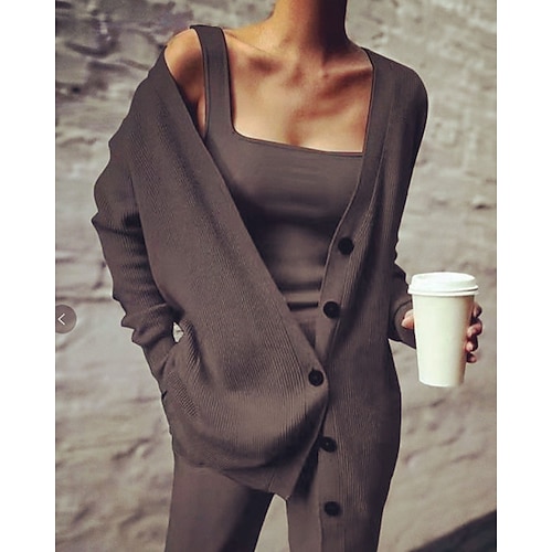 Per donna Felpa Cardigan Moda Streetwear Quotidiano Tinta unica A Coste Aperto davanti Lavorato a maglia Manica 3/4 Top Regolari Maglia Ferie Uscire Weekend Nero Bianco Primavera Autunno
