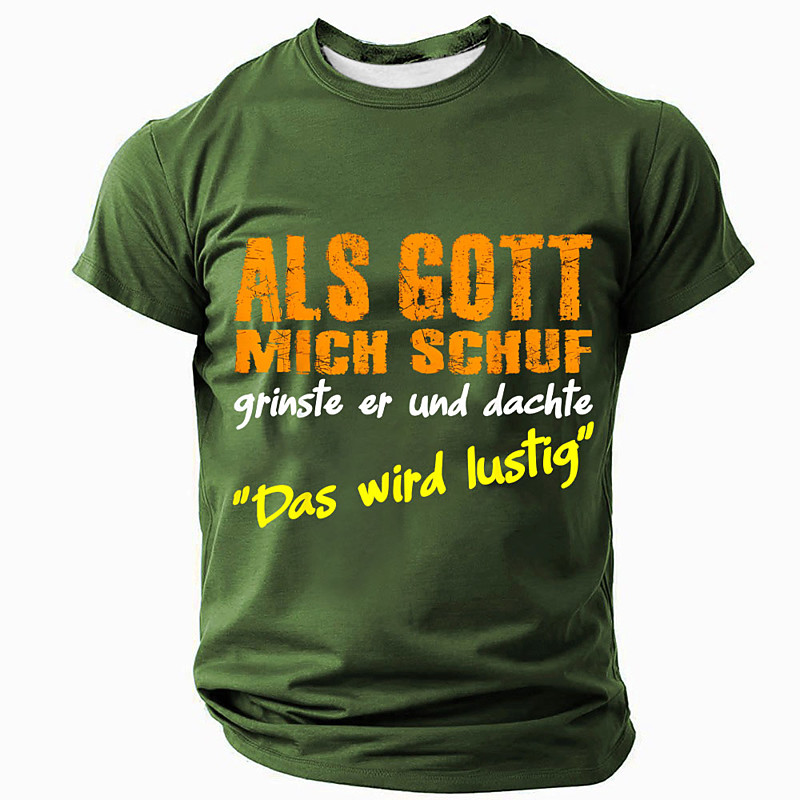 T-shirt grafica divertente a manica corta da uomo - Maglietta divertente con citazione tedesca 'Quando Dio mi ha creato ha detto che sarebbe stato divertente!'