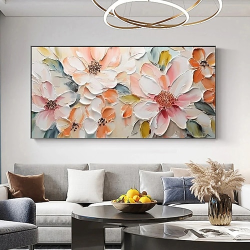 composizione floreale dipinta a olio 3D fatta a mano con colori vivaci e texture ricche, creata utilizzando la tecnica dell'impasto che mette in mostra petali delicati e tonalità vivaci, perfette per