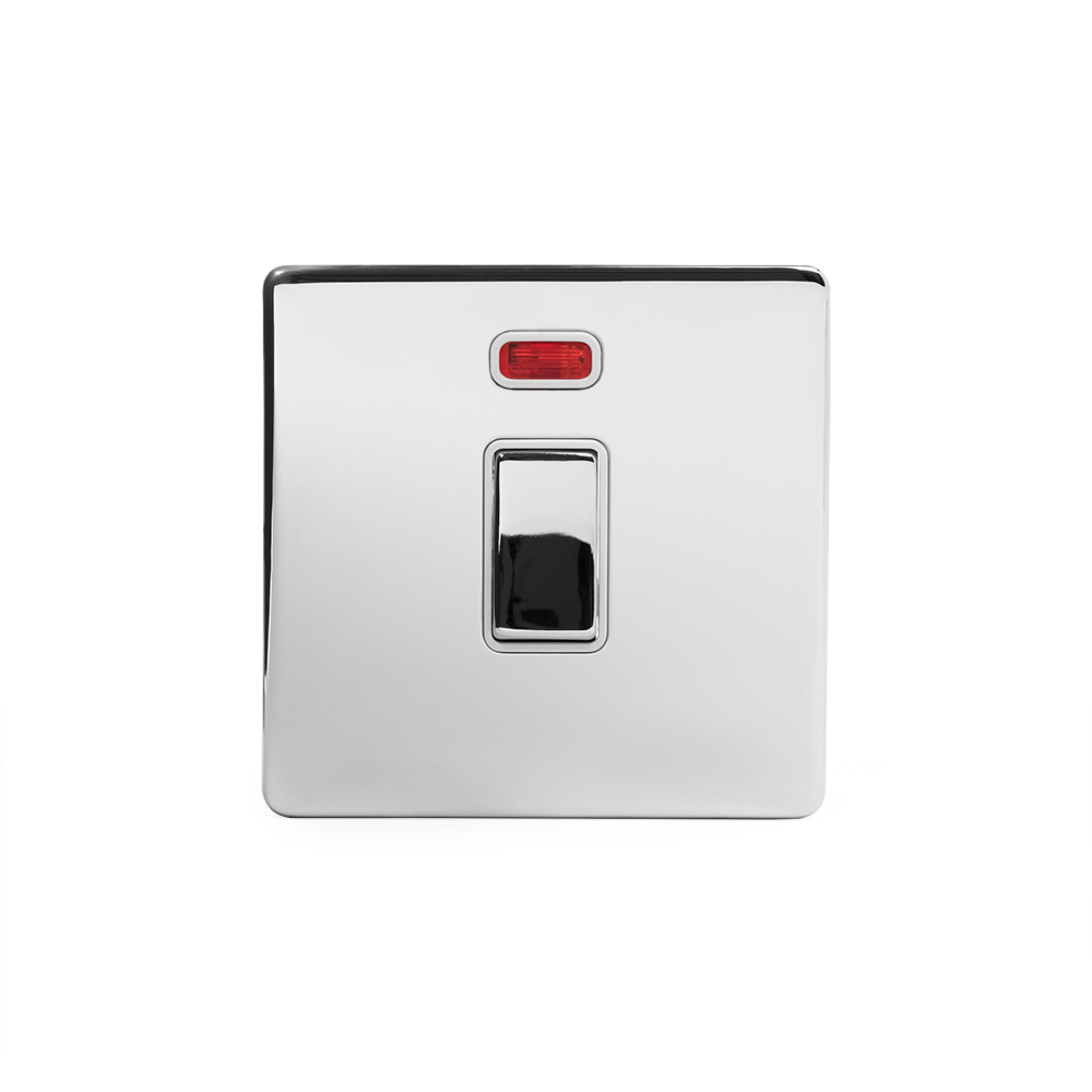 Soho Lighting Polished Chrome 20A 1 Gang Double Pole Switch With Neon Wht Ins Screwless
