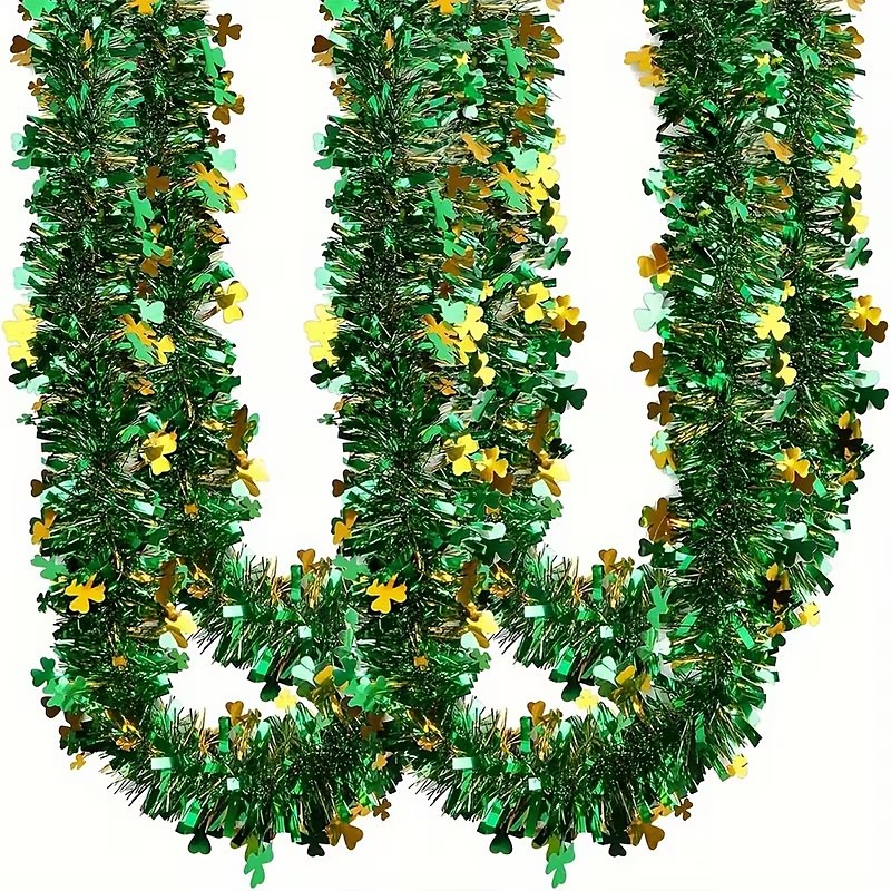 26FT St. Patrick's Day Tinsel Garland,(4 Pcs 8m Total) Shamrock Green Gold Foil Plastic Decoration, Irish Festival Party, Home Decor