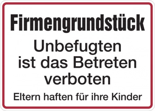 Hinweisschild, Firmengrundstück, Aluminium, 250 x 350 mm - 350x250x0.45 mm Aluminium geprägt