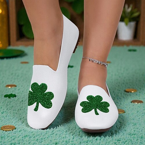 Flyknit-Loafer für Damen – atmungsaktive Slipper mit Kleeblattmuster, perfekt für Veranstaltungen am St. Patrick's Day, tägliche Besorgungen, Treffen in Innenräumen und Freizeitaktivitäten